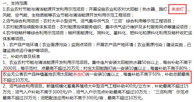 各省份對購買使用殺蟲燈的財政補貼政策不一樣,有的地方補貼多,有的地方補貼少。比如在浙江省,這個沿海地區,農業無公害農產品種植基地農用亚洲AV成人网站在线观看麻豆統一安裝10盞以上,每盞補助不高於50%,補助總額最高不超過10萬元。